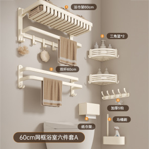 六件套A【旗舰款60+三角篮*2+纸巾盒+马桶刷+毛巾杆+排钩】★