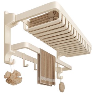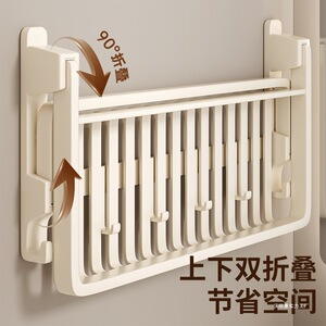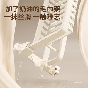 新【旗舰款】奶油白升级下折叠带钩毛巾架50cm★