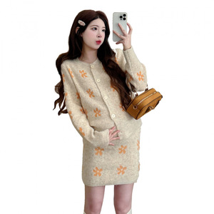 孕妇装秋冬套装时尚新款潮妈显瘦针织开衫百搭包臀短裙洋气两件套