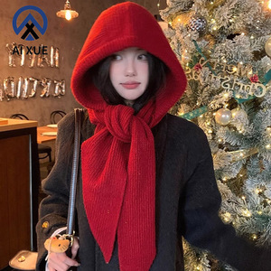 2025秋冬季新款纯色针织帽子披肩巴拉克拉法帽女秋冬季保暖毛线帽