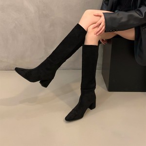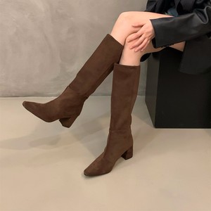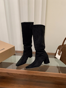 高跟绒面咖色堆堆长筒骑士靴女靴子2025秋冬季配裙子瘦瘦中筒长靴