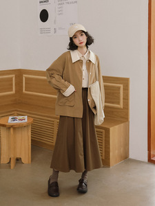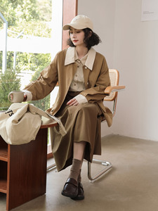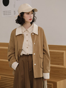实拍2025秋冬新款日系磨毛撞色拼色工装休闲宽松小个子风衣外套女