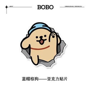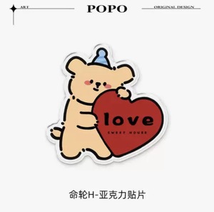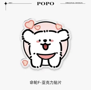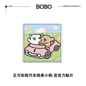正方形粉底捏脸线条小狗【亚克力贴片】