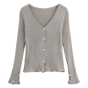 一件代发V领针织打底开衫女春季韩系高级感修身辣妹螺纹长袖上衣