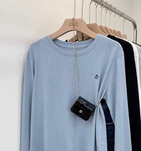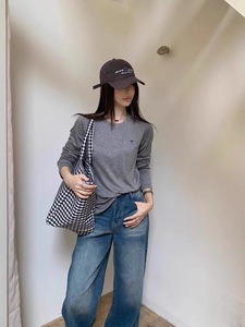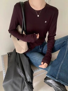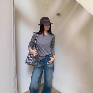 2025秋季新款韩版时尚百搭圆领长袖T恤女宽松显瘦纯色打底衫上衣