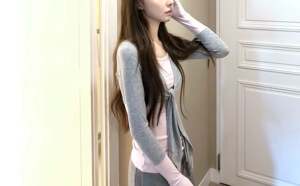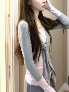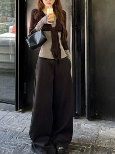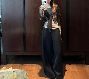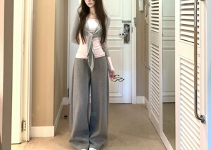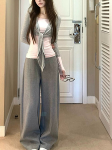 YUYUREA 时髦套组 假两件长袖tee/空气层宽腰针织裤