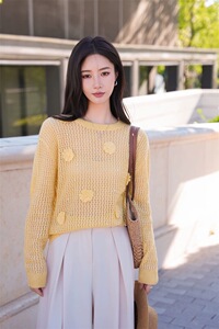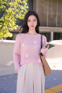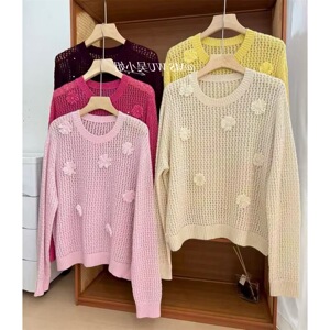 重工丝羊毛!2025冬季新款慵懒风镂空罩衫钩花长袖套头打底针织衫