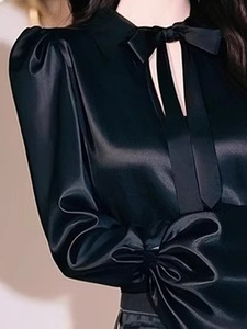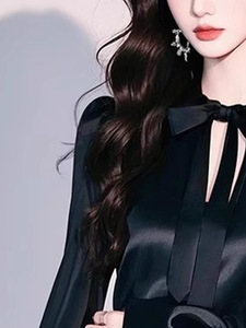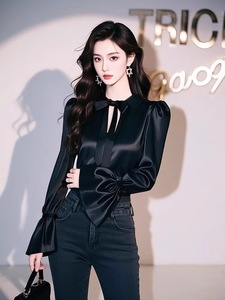 气质轻熟风黑色飘带衬衫时髦洋气高级感长袖衬衣通勤百搭上衣女装