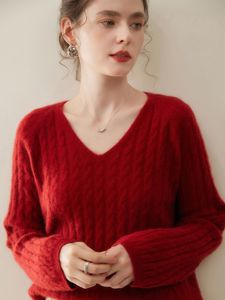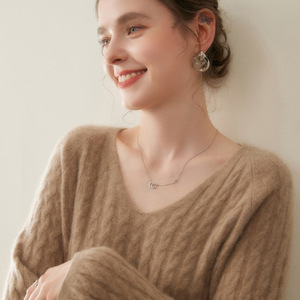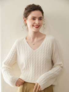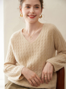 轻奢慵懒风!baby小山羊绒衫女V领宽松廓版毛衣小麻花厚款针织衫