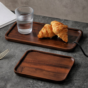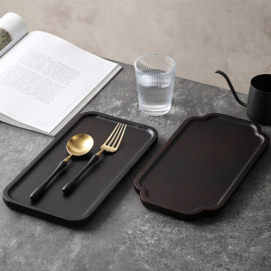 深棕色长方形托盘茶盘