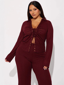 欧美跨境亚马逊2025秋季女装休闲翻领长袖正面系带衬衫休闲长裤套