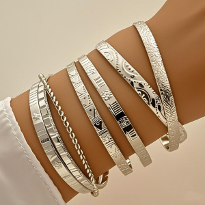 ins欧美跨境手饰菱形麻花光面手镯12件套不规则朋克手饰套装批发
