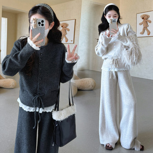 孕妇套装2025新款秋冬季穿搭法式设计感气质针织毛衣孕期两件套装
