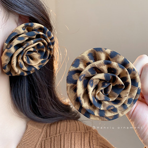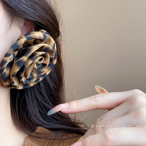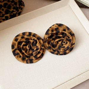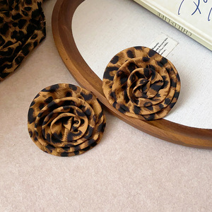 欧美夸张银针布艺豹纹花朵耳钉时尚个性耳环女气质耳饰设计感小众