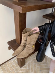 titing古着博主感!气质绒面尖头金属扣堆堆靴女秋冬编织两穿短靴