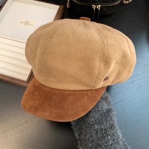 复古灯芯绒八角贝雷帽女秋冬古着文艺风百搭画家帽显脸小鸭舌帽子