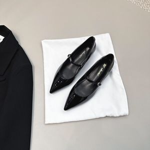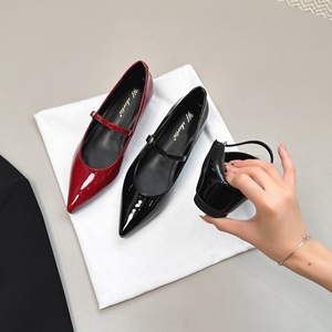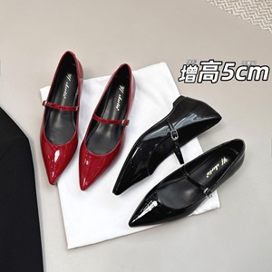 增高5公分漆皮一字带浅口单鞋女2025年新款复古尖头平底玛丽珍鞋
