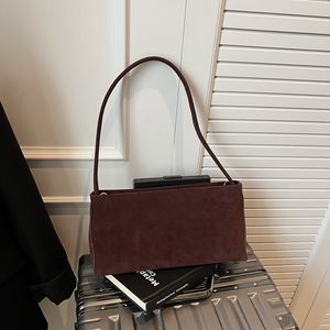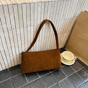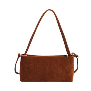韩系复古笔筒包新款小众新品极简麂皮绒通勤手拎斜挎包单肩腋下包