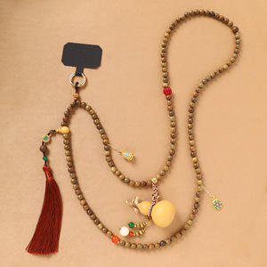 新中式葫芦斜挎链绿檀木串珠长款项链国风手机挂链女背链