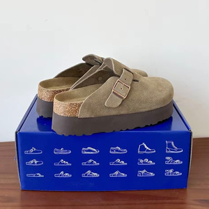7厘米牛皮勃肯鞋真皮包头拖鞋外穿松糕厚底增高复古一脚蹬博肯鞋