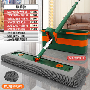 【50CM】雪尼尔免手洗平板拖把加厚木地板魔术墩布大号带桶一拖净
