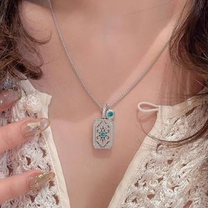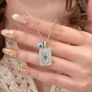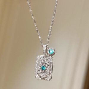 新款小红书方形钻无事牌蓝钻牌吊坠项链女轻奢气质聚会锁骨链批发
