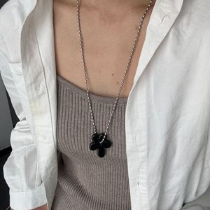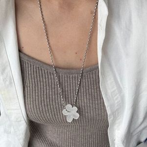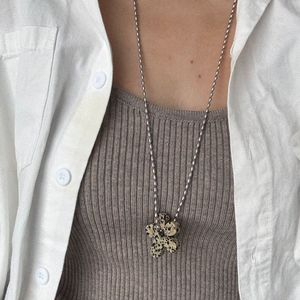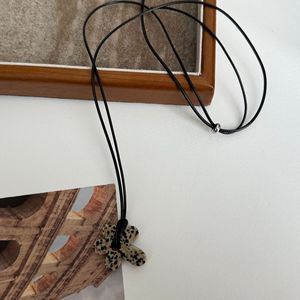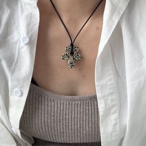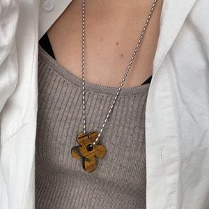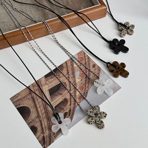 复古风蜡绳虎眼石天然石花朵吊坠项链轻奢毛衣链个性时尚百搭项饰