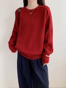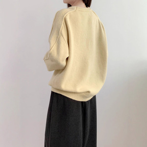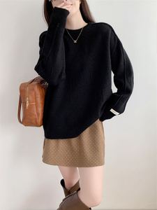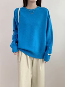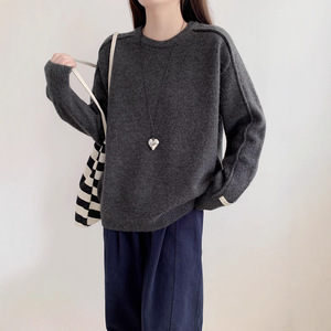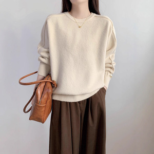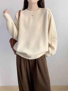 跨境新款纯色圆领宽松厚实慵懒风长袖针织套头衫女简约休闲外套