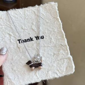 精致可爱滴油腊肠狗珍珠项链女甜美少女小众轻奢高级感颈链锁骨链