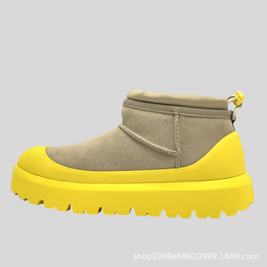 河南桑坡冬季王一博迷你牛皮真皮羊毛厚底低帮抽绳雪地靴情侣棉鞋