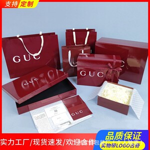 GU古家新款高端大气红色包装盒手提袋折叠盒 logo对标防尘袋现货