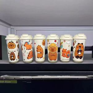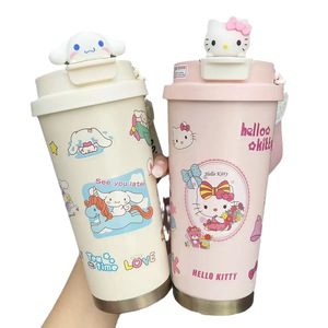 外贸日用品爆款labubu保温杯304不锈钢双饮咖啡杯带吸管提手批发