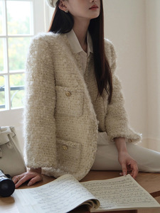 羊毛埃及金双C御用手工坊宽松小香风长袖外套上衣女秋季