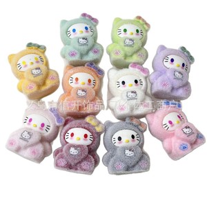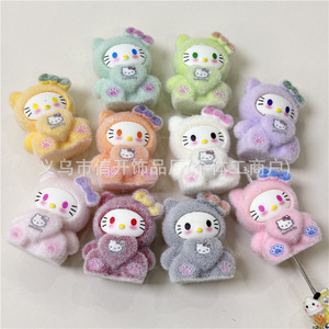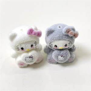 通孔树脂植绒kt猫立体卡通串珠笔配件手机钥匙链diy手工饰品材料