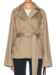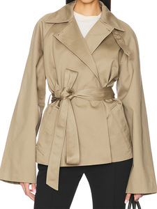 深圳南油女士短款系带风衣2025秋季新款小众设计感翻领收腰上衣