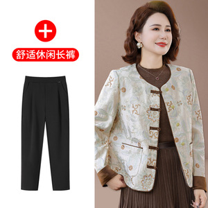 新中式妈妈上衣秋装外套2025新款中老年时尚女装春秋开衫一件代发