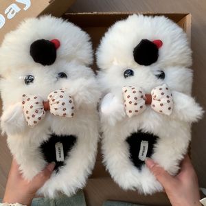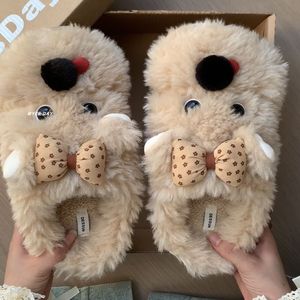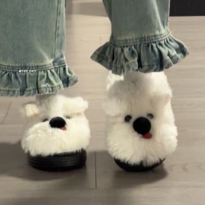 可爱趣味毛绒小狗舒适防滑平软底包头拖女2025秋冬新款保暖棉拖鞋