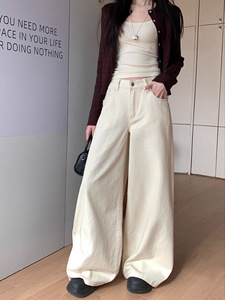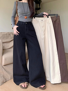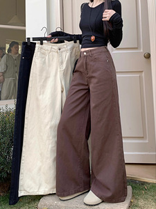 阔腿裤黑色长裤咖色宽松高腰牛仔裤女秋季百搭显瘦垂感直筒裤拖地