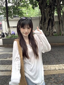 别致口袋设计宽松薄款防晒罩衫女秋季韩版竹节棉长袖打底T恤上衣