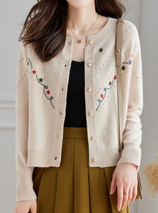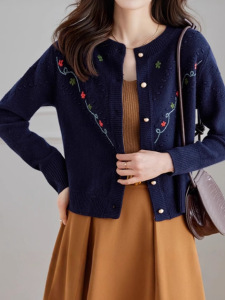 手工绣花减龄毛针织开衫女2025新款春季短款外搭软糯毛衣外套百搭
