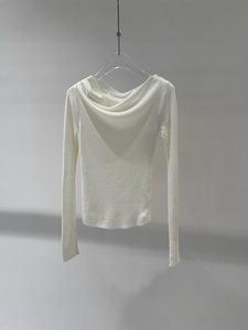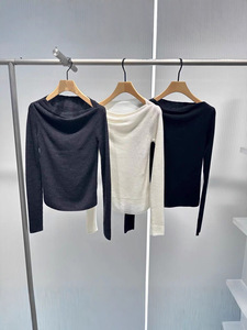 2025秋季新款女装时尚气质百搭纯色长袖一字领针织衫上衣 804008