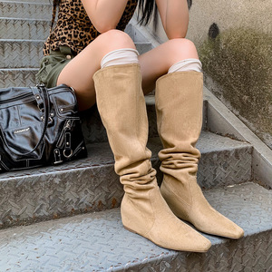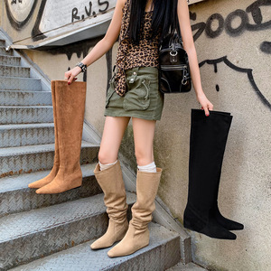 zijin家~可爱女人~韩系温婉风绒面方头内增高一脚蹬长靴~秋冬新款
