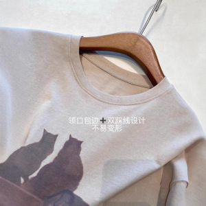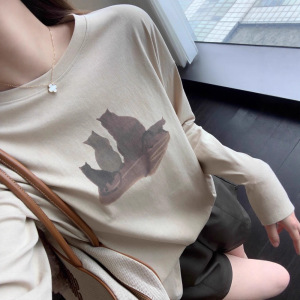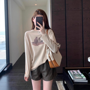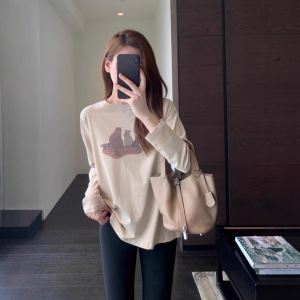 ED910萌宠减龄 慵懒范显瘦卡通印花长袖T恤宽松打底衫女秋新款