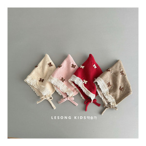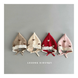 婴儿帽子秋冬蝴蝶结针织帽女宝宝加棉内衬保暖护耳帽婴幼儿宫廷帽