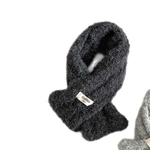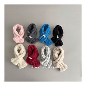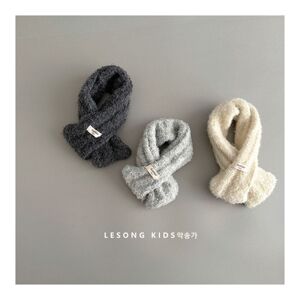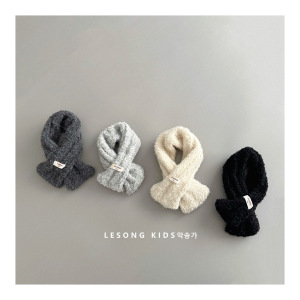 儿童ins韩版时尚百搭纯色秋冬雪尼尔小标男女童围巾