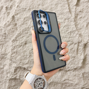 跨境适用三星S25Ultra镜头支架磁吸手机壳s24防摔S23双色利盾保护