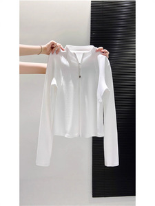 专柜撤回~剪标专柜设计感双拉链长袖t恤女修身显瘦内搭打底上衣