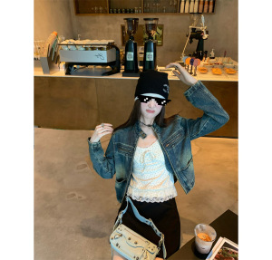aaaaxbbb 阿尔维克 拉链牛仔外套水洗复古分割设计时髦短上衣春秋