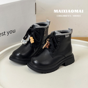 迈小迈2025年秋季新款童鞋韩版可爱挂件皮靴防滑软底男女童马丁靴