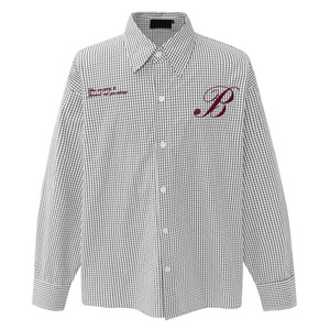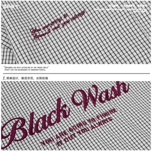 广州光复南 美式刺绣格子长袖衬衫男女潮宽松慵懒感休闲上衣外套